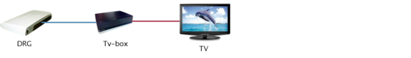 Koppla tv-boxen till DRG:n med en vanlig nätverkskabel (Ethernet). Från tv-boxen ansluter du tvn via Scart, RGB, S-Video eller HDMI (beroende på vilken box du valt och vilken tv du har).